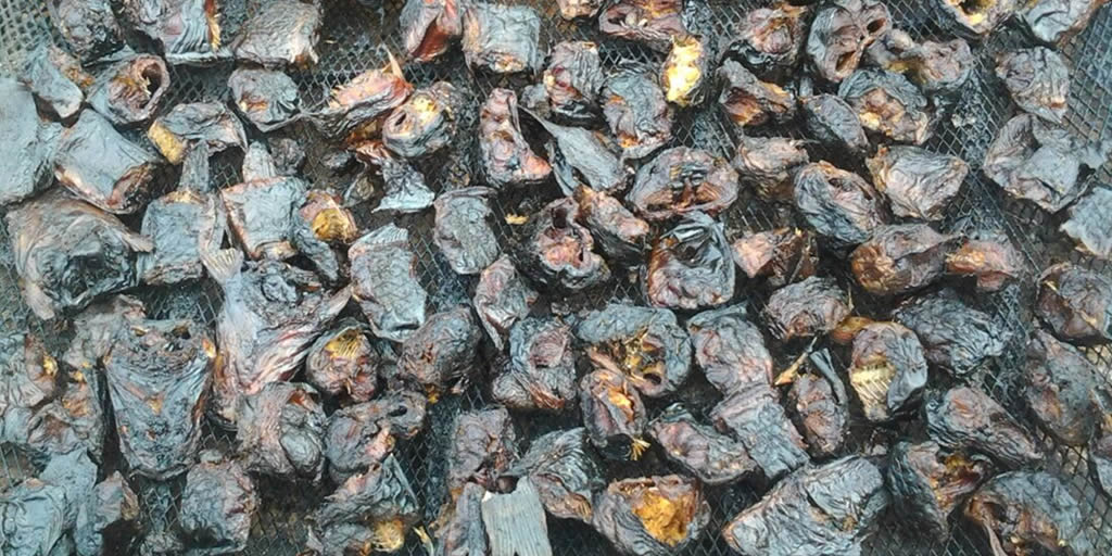 Pieces of smoked fishes