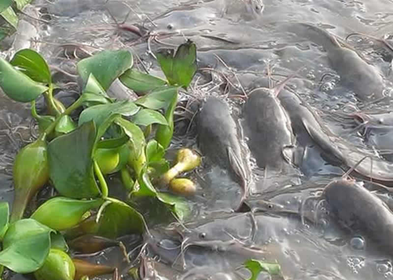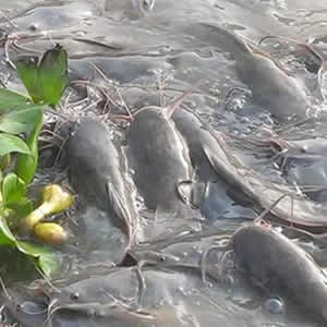 Medium sized catfishes in their earth pond