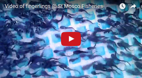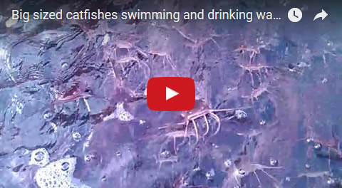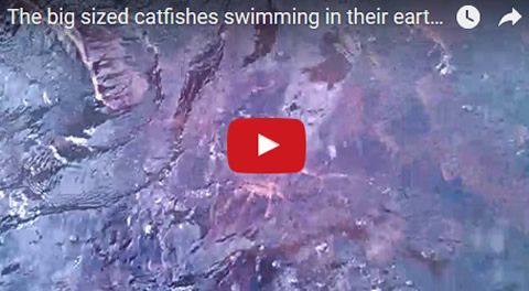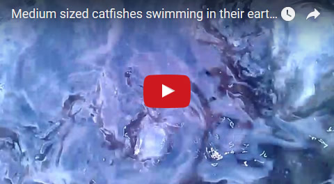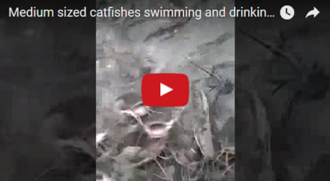 Medium sized catfishes swimming and drinking water in their earth pond St Mosco Fisheries