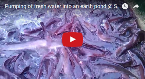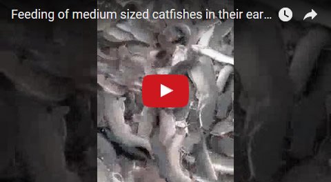 Feeding of medium sized catfishes in their earth pond at St Mosco Fisheries