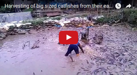 Harvesting of big sized catfishes from their earth pond @ St Mosco Fisheries